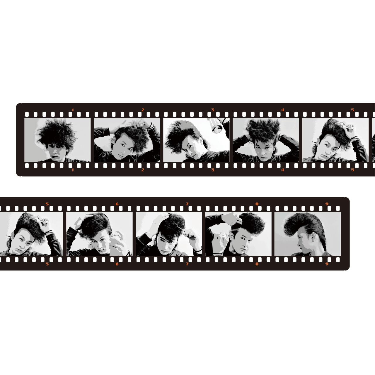 リーゼントがだんだんと出来上がっていくマスキングテープ。